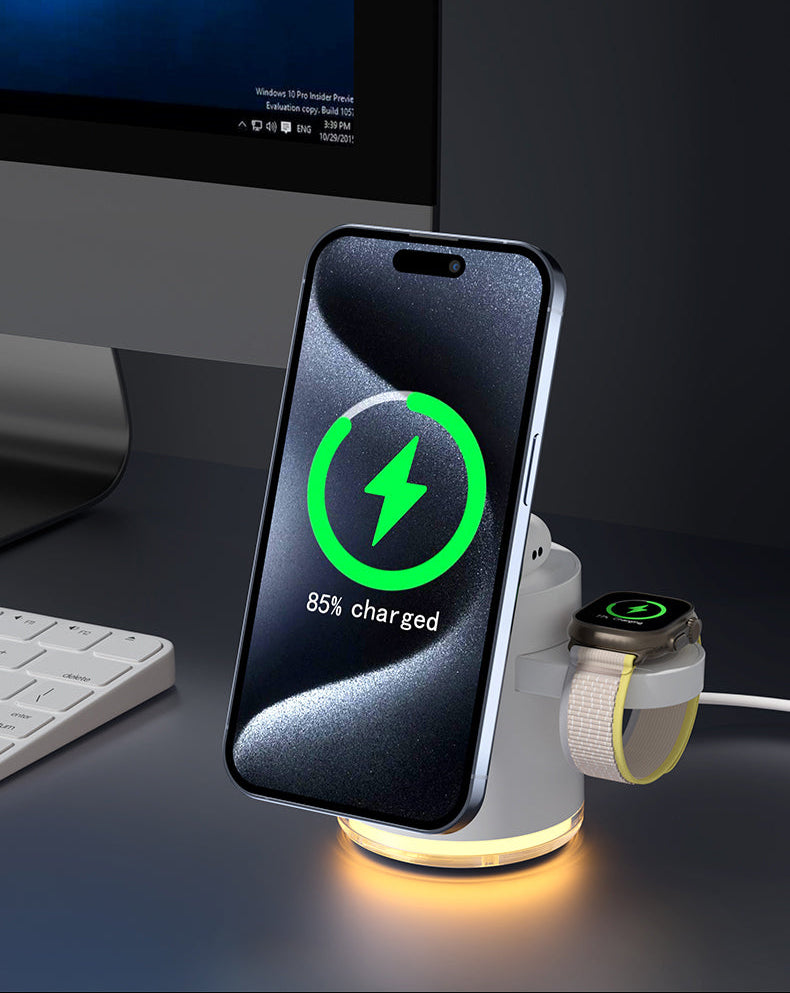 No need to charge one device at a time. The MiniDock Pro lets you power up your iPhone, Watch, AirPods, and even has a built-in LED light for extra convenience!