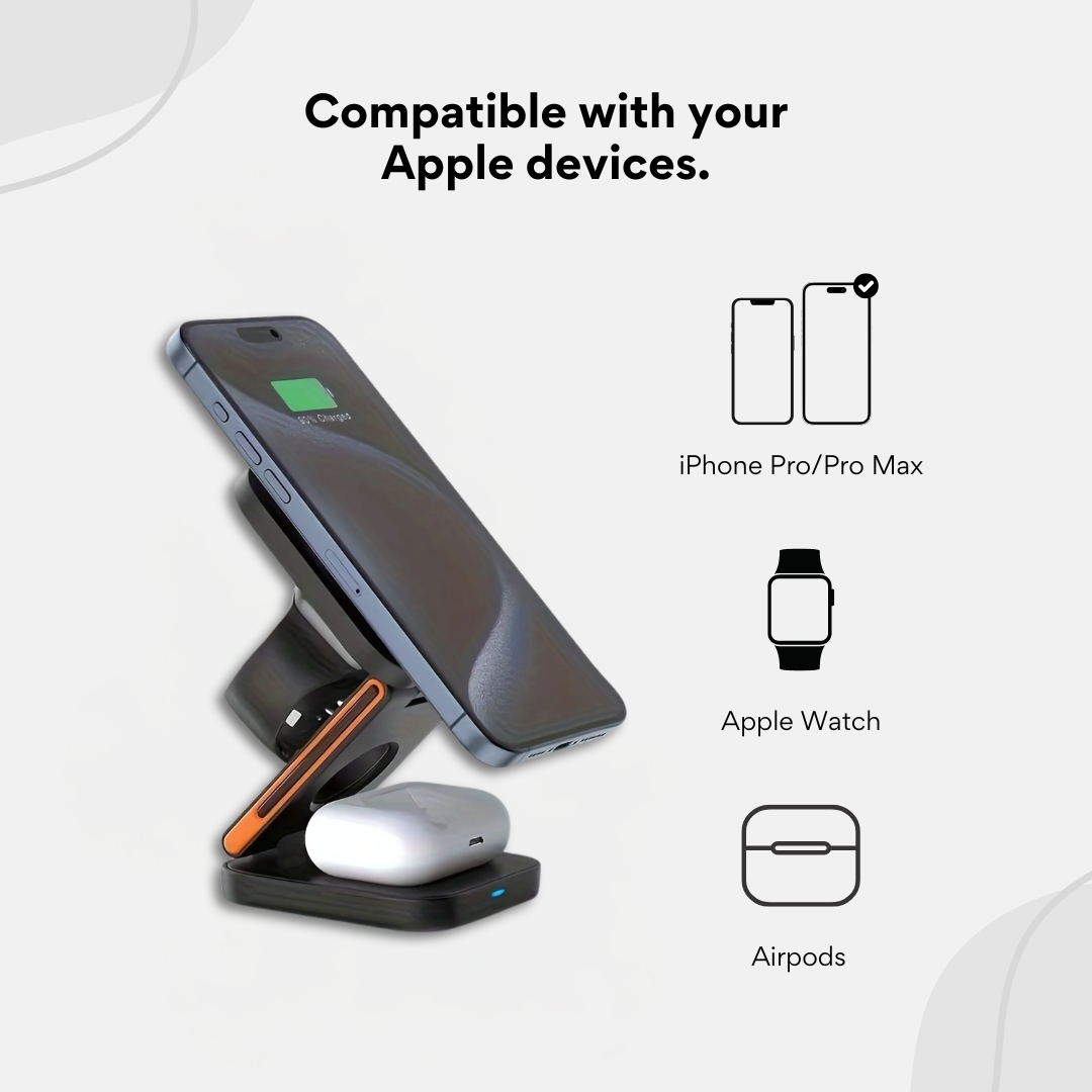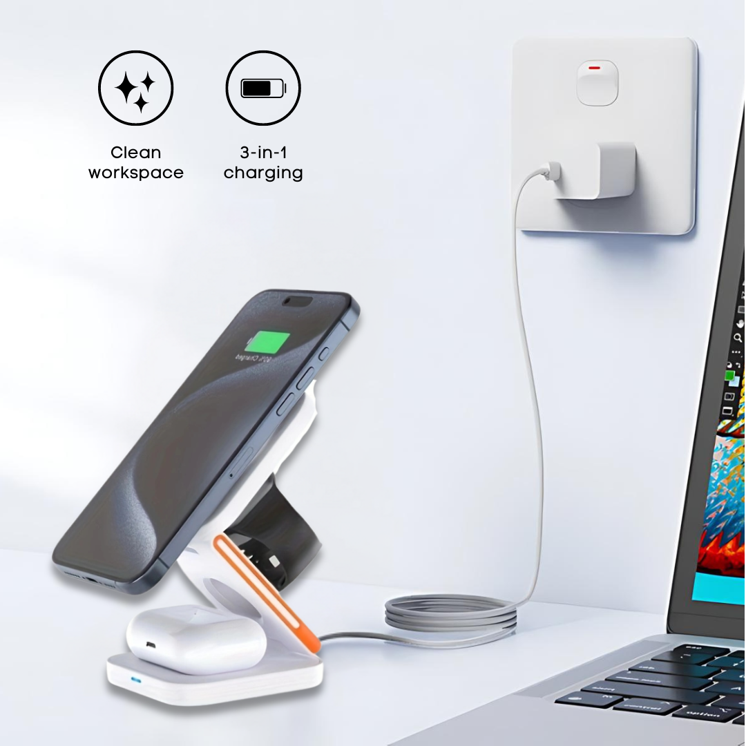 No need to wait to charge one device at a time. This charger lets you power up your iPhone, Watch, and Airpods all at once!